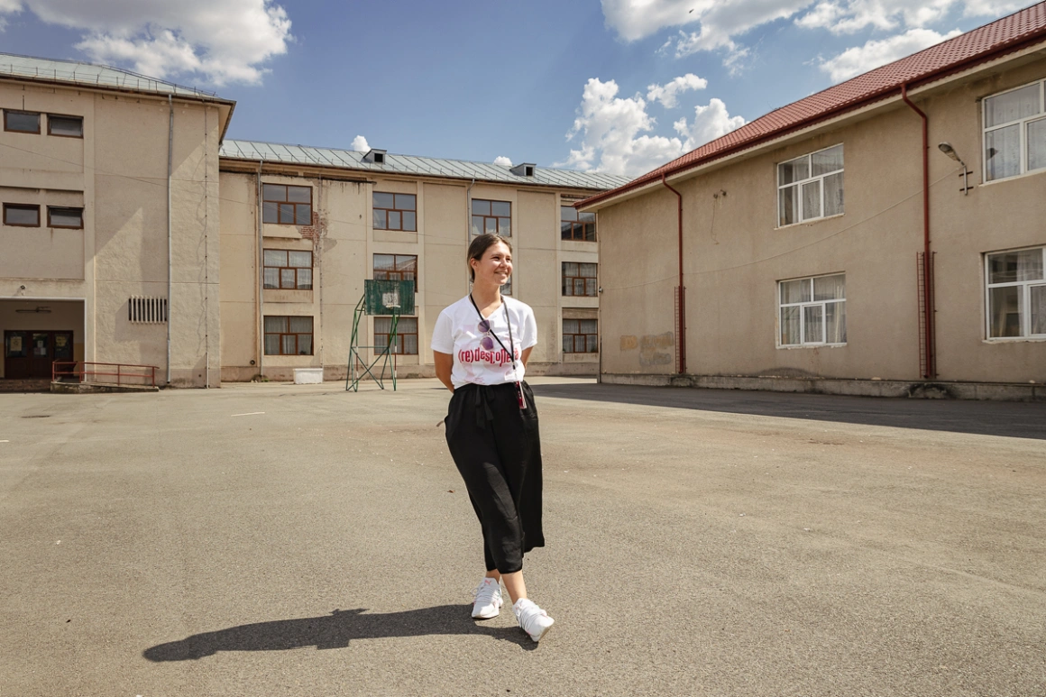 În curtea Colegiului Pedagogic „Mircea Scarlat”, pe care Anca l-a absolvit în 2020