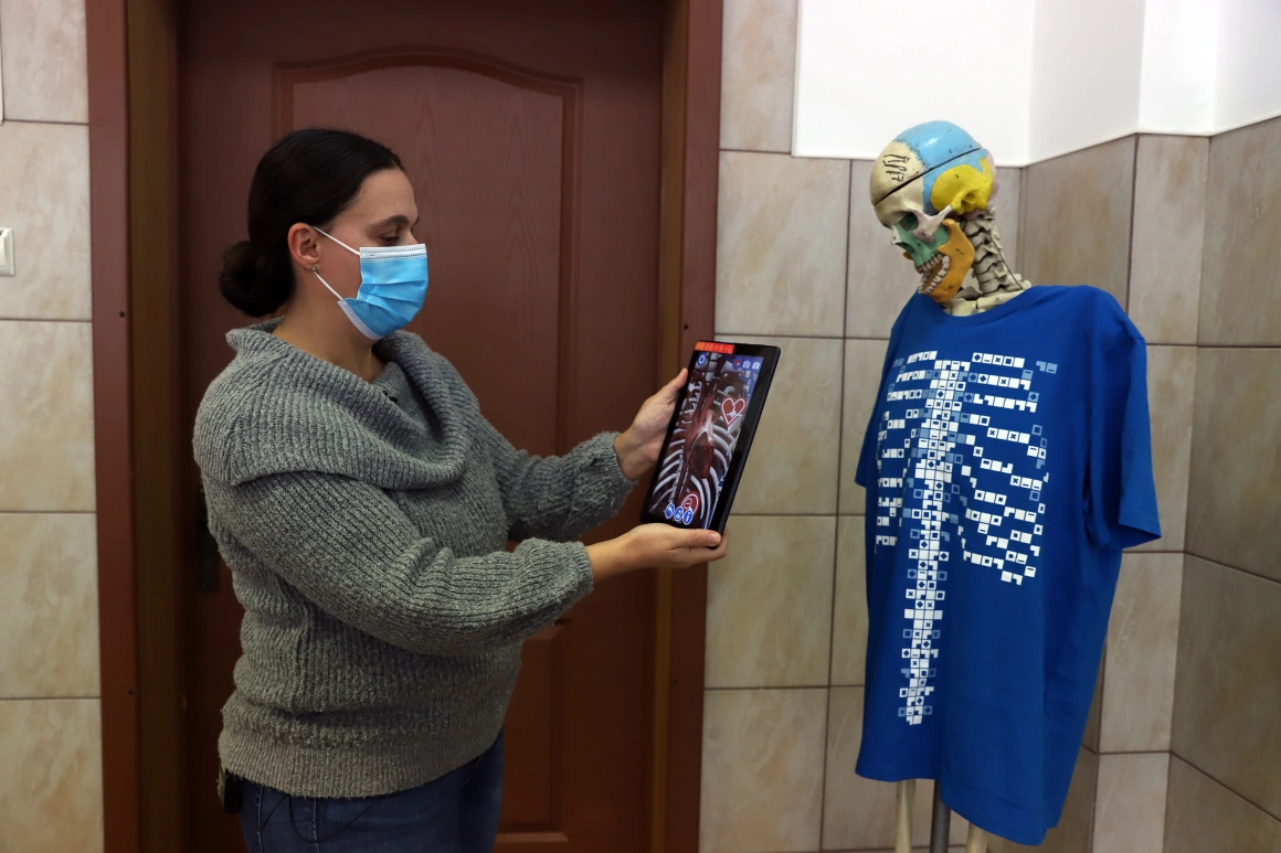 De curând, nu-și mai arată impudic coastele. A îmbrăcat un tricou de realitate augmentată. Un soft scanează tricoul și elevii vor putea vedea organele corpului uman pe o tabletă pusă în fața tricoului.