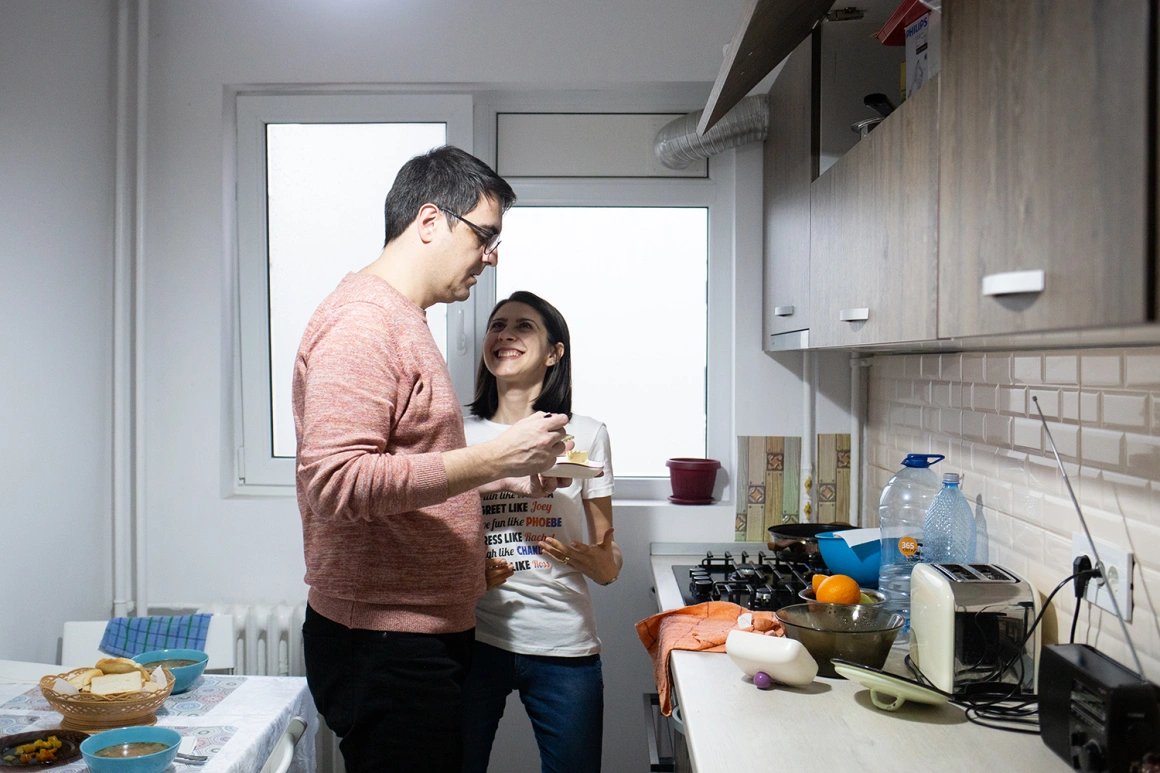 La finele celor doi ani de Teach for Romania, Andrei și Elena s-au căsătorit și s-au mutat în capătul celălalt al orașului, de unde ea ajunge mult mai repede la școala din Gălbinași.