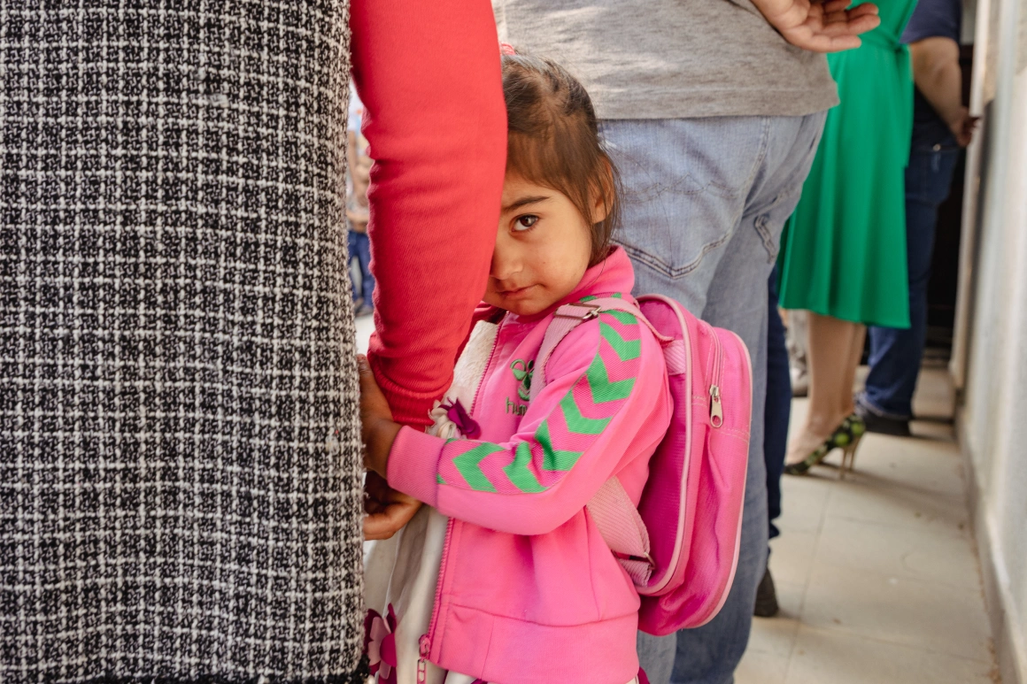 O fetiță cu păr șaten prins în două codițe stă strânsă pe scaun, cu spatele la tabla pe care scrie „Bine ați venit! Anul școlar 2023-2024”. Încârligă un deget în semn să te apropii. Cu gura aproape de ureche șoptește: „Cine e șef în casa asta?” Arăt spre bărbatul scund, în sacou crem, care întâmpină copil după copil.