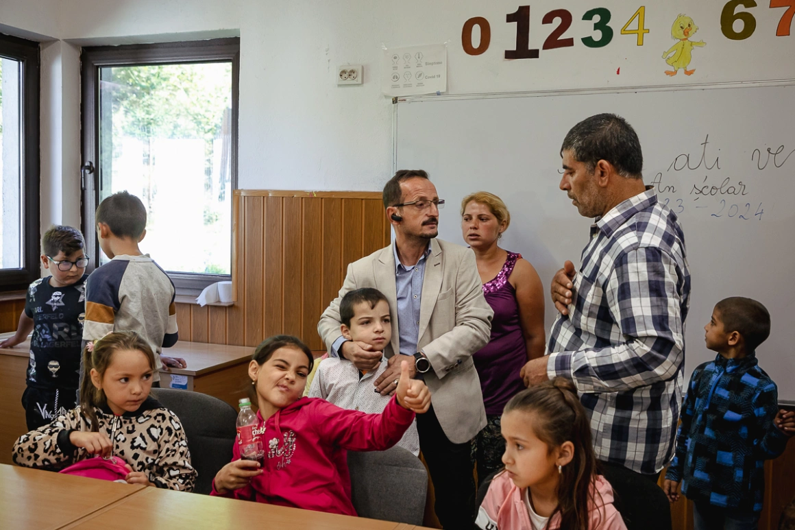 „Și copiii ăștia merită, au și ei nevoie de profesori buni”. Mângâie capete, răspunde la îmbrățișări, zâmbește, șterge sucul vărsat pe jos, întâmpină părinți.